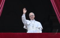 - Rom, Vatikan 11.05.2025 Erstes Sonntagsgebet / Regina Caeli von der Loggia am Petersdom von Papst Leo XIV. FOTO: Pressefoto ULMER / Alberto Lingria xxNOxMODELxRELEASExx
