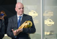 - Fussball, Archivbild, Vorschau FIFA WM 2026 in USA, Mexiko und Kanada WM Gruppen - Auslosung FIFA Praesident Gianni Infantino mit WM Pokal FOTO: Pressefoto ULMER / Markus Ulmer xxNOxMODELxRELEASExx