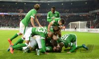 - FUSSBALL 1. BUNDESLIGA SAISON 2014/2015 11. SPIELTAG SV Werder Bremen - VfB Stuttgart 08.11.2014 Raphael Wolf, Felix Kroos, Assani Lukimya und Ludovic Obraniak (v.l., alle SV Werder Bremen) freuen sich nach dem Abpfiff FOTO: Pressefoto ULMER/Bjoern Hake xxNOxMODELxRELEASExx
