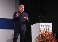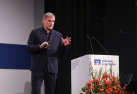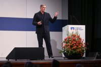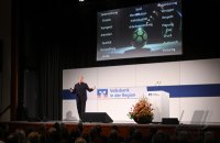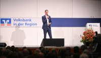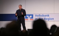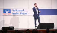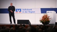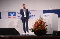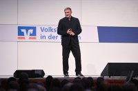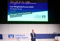 - Rottenburg (Kreis Tuebingen) 21.10.2025 VOBA Vorstand Thomas Bierfreund (Co-Vorstandssprecher) begruesst beim Mitglieder Forum der Volksbank in der Region in der Rottenburger Festhalle mit Stefan Kuntz - Neue Wege gehen und erfolgreich am Ball bleiben, die Besucher und Gaeste FOTO: Pressefoto ULMER / Markus Ulmer xxNOxMODELxRELEASExx