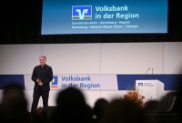 - Rottenburg (Kreis Tuebingen) 21.10.2025 Besucher, Gaeste beim Mitglieder Forum der Volksbank in der Region in der Rottenburger Festhalle mit Stefan Kuntz - Neue Wege gehen und erfolgreich am Ball bleiben. VBIDR Vorstaende Thomas Bierfreund (Co-Vorstandssprecher), Ralf Gottschalk, Thomas Taubenberger und Joerg Stahl (Mitte v.li, Co-Vorstandssprecher) FOTO: Pressefoto ULMER / Markus Ulmer xxNOxMODELxRELEASExx