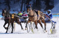 - Pferdesport White Turf St. Moritz 13.02.2022 Trabrennenm, Walter Theiler (li) mit Kiss Forever und Loris Ferro (re) auf Sonny Club FOTO: ULMER Pressebildagentur xxNOxMODELxRELEASExx